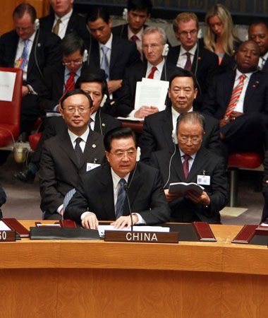 9月24日,胡錦濤在紐約出席安理會(huì)核不擴(kuò)散與核裁軍峰會(huì)并發(fā)表重要講話。新華社記者鞠鵬 攝
